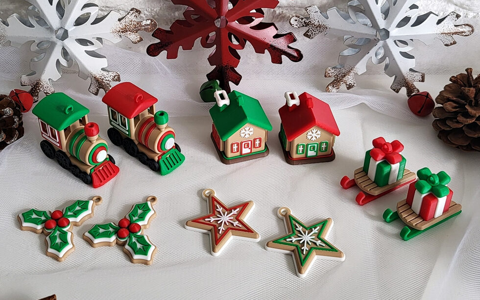 Brand-new holiday ornaments, ready for display.